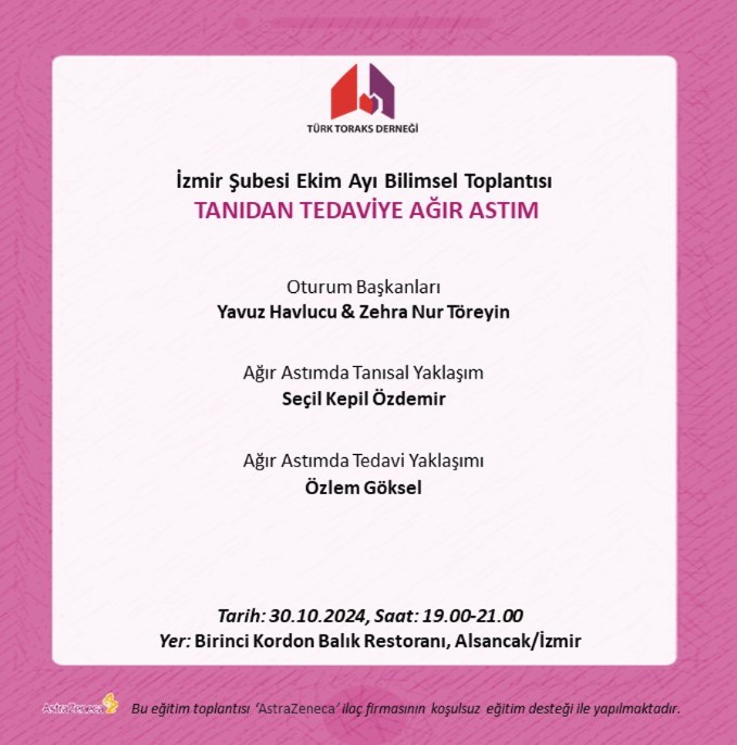 Türk Toraks Derneği İzmir Şubesi Ekim Ayı Bilimsel Toplantı Duyurumuz: "Tanıdan Tedaviye Ağır Astım"